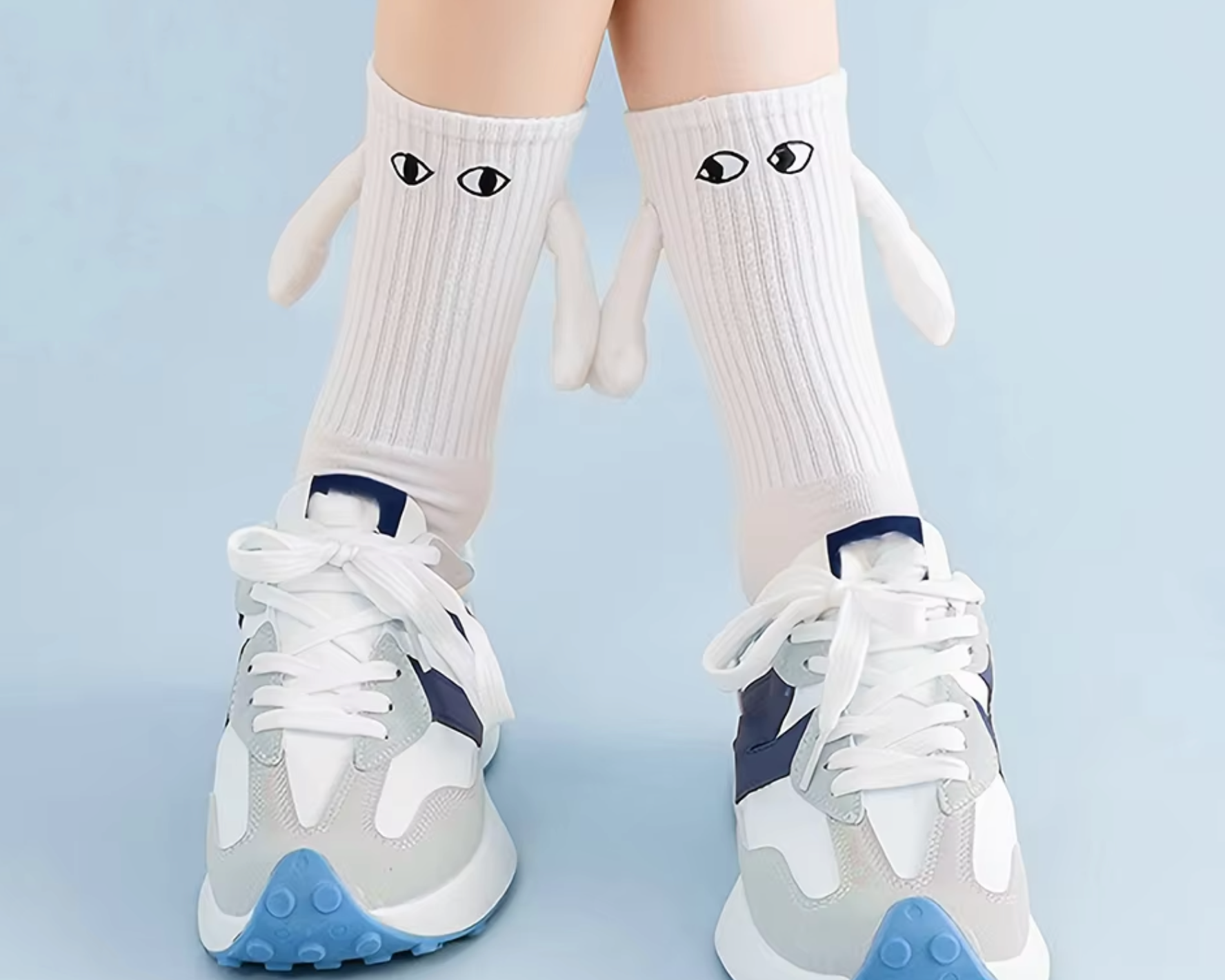 Dodaj odrobinę zabawy do swojej kolekcji skarpetek z naszymi Magnetycznymi skarpetkami do trzymania! Te unikalne, wygodne skarpetki mają uroczy magnetyczny design, który pozwala im „iść ręka w rękę” po połączeniu – idealne dla par, najlepszych przyjaciół lub każdego, kto lubi zabawny twist w stylu.