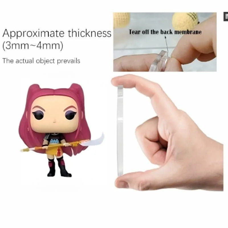 Figurki mają ok. 3–4 mm grubości i posiadają samoprzylepny tył – można je łatwo eksponować na biurku, półce lub w dowolnym miejscu, które chcesz ozdobić swoim fandomem 💫